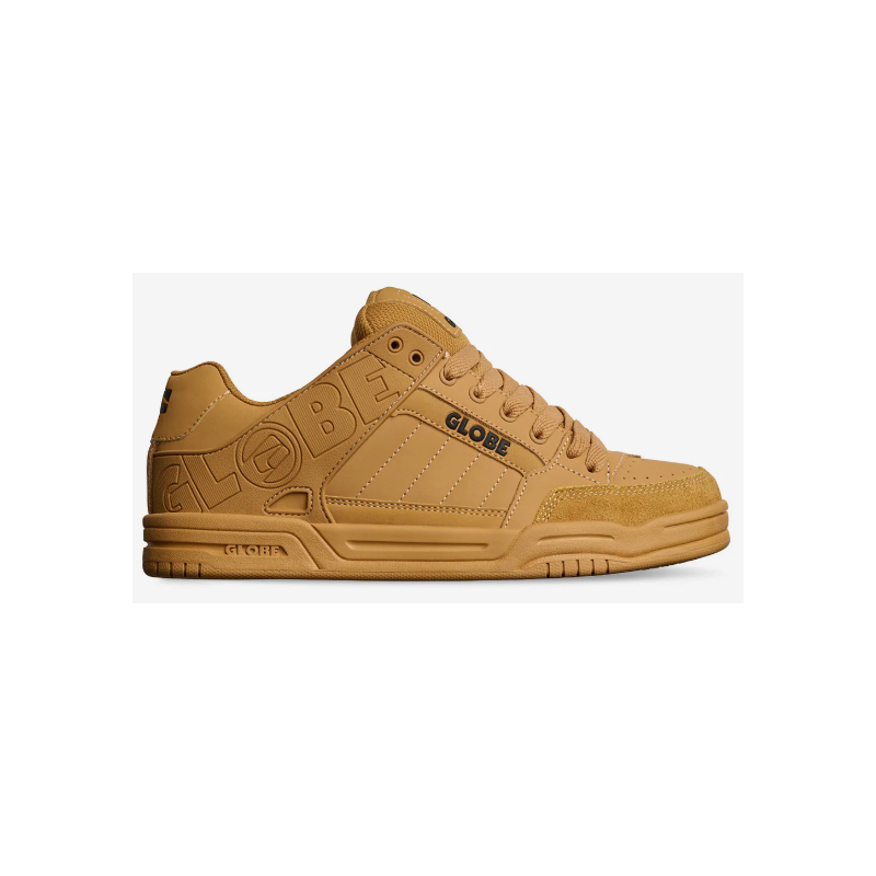 The Tilt in Honey/ Gum Globe’s classic heritage skate silhouette featuring a moulded TPR outside collar for support and durability, and S-Trac™ sole pattern for enhanced grip and board feel.